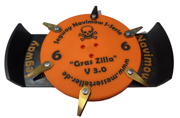 Messerteller aus dem 3D-Drucker werden zwar auch aus stabilen Materialien (ABS) hergestellt, sind aber so konstruiert, dass das Material ab einer gewissen Schlagstärke gegen die Schraubenköpfe nachgibt. Der Unterschied ist ein etwa 300 € geringerer Schaden. Ausgerissene Gewindebuchsen sind also kein Fehler, sondern ein ernster Hinweis auf Hindernisse, die Ihrem Mähroboter schnell das Leben kosten können. Der sicherste Weg, Ihren Roboter ins Jenseits zu befördern sind übrigens Metallteller mit starren Klingen (meistens festverschraubte Ceranfeldschaber)!