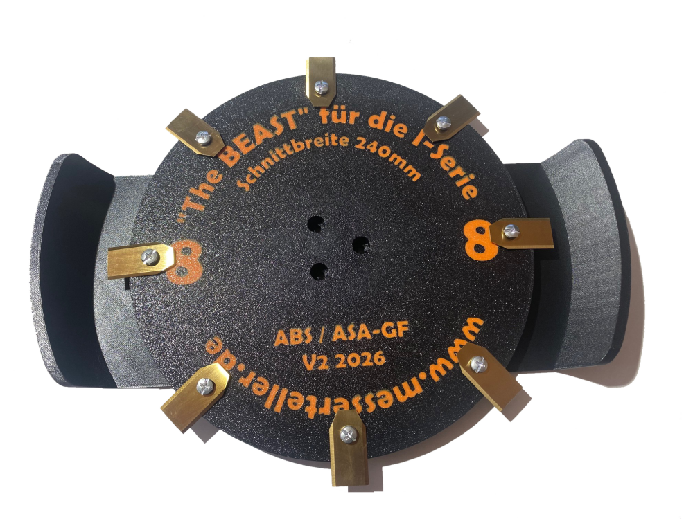 Mittlerweile ist eine ganzes Sortiment an Zubehör für verschiedene Hersteller entstanden. Neben Messertellern gibt es nun auch verschiedene Halterungen für die GPS-Antenne sowie Kratzschutz, Ersatzmesser und einen 300mm Messerschutz für die Aufnahme größerer Teller.