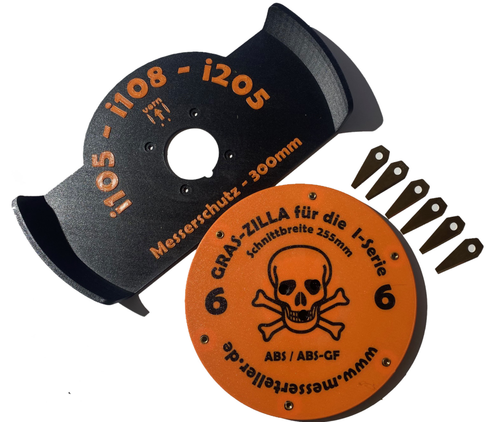 Messerteller aus dem 3D-Drucker werden zwar auch aus stabilen Materialien (ABS-GF) hergestellt, sind aber so konstruiert, dass das Material ab einer gewissen Schlagstärke gegen die Schraubenköpfe nachgibt. Der Unterschied ist ein etwa 300 € geringerer Schaden. Ausgerissene Gewindebuchsen sind also kein Fehler, sondern ein ernster Hinweis auf Hindernisse, die Ihrem Mähroboter schnell das Leben kosten können. Der sicherste Weg, Ihren Roboter ins Jenseits zu befördern sind übrigens Metallteller mit starren Klingen (meistens festverschraubte Ceranfeldschaber)!