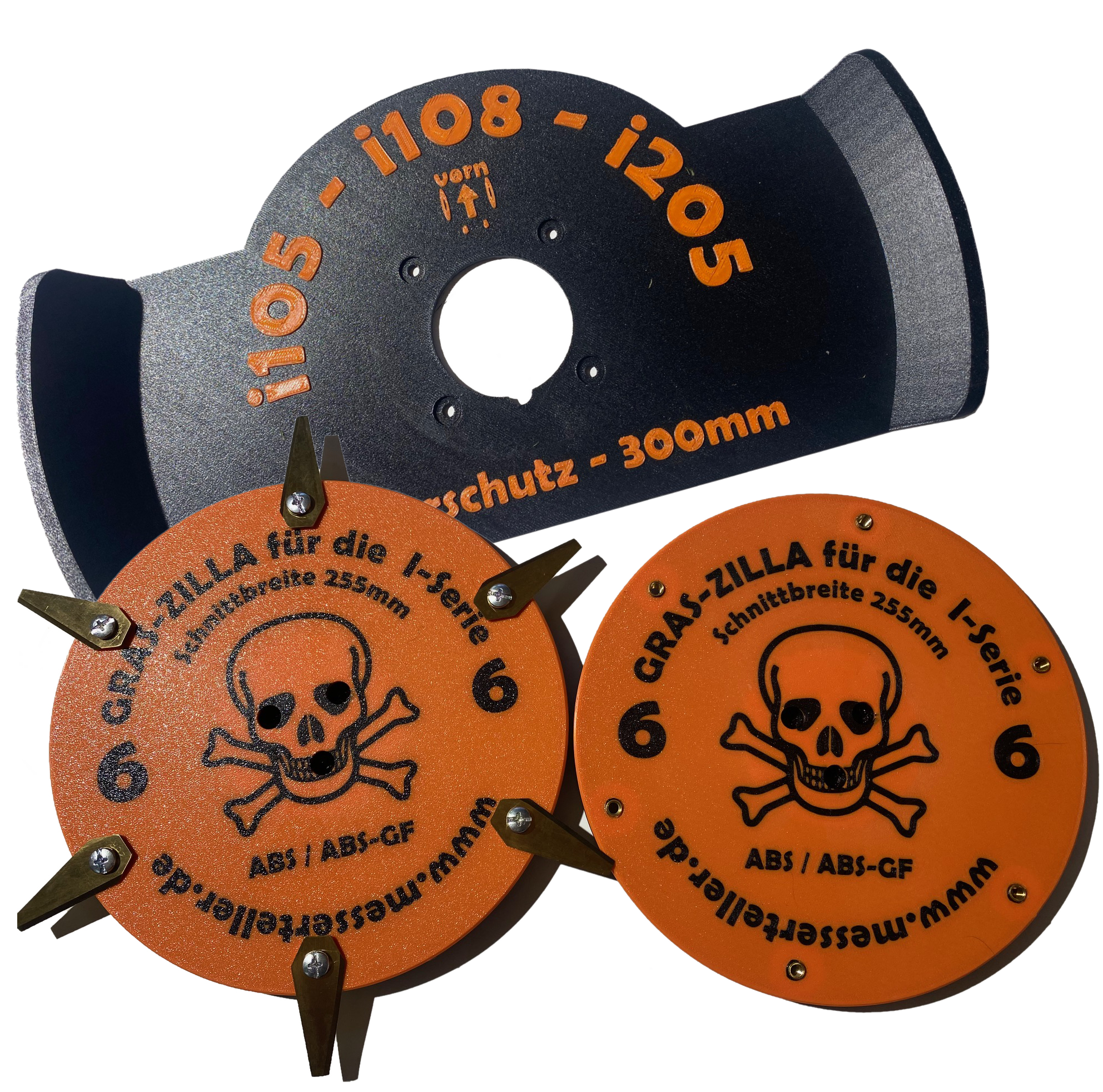 Graszilla 255mm Schnittbreite mit der 6-er Messerscheibe für den Navimow i105 und i108 mit 6 Indego Klingen für sauberere Übergänge